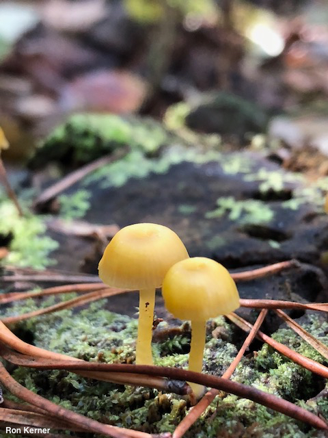 [ Basidiomycota > Agaricales > Hygrocybaceae > Chromosera . . . ] Chromosera lilacifolia by Michael Kuo, 26 December 2025 Rarely collected, this tiny omphalinoid mushroom appears on the well-rotted deadwood of conifers in eastern North America. Distinguishing features include its yellow cap and stem, contrasting nicely with its lilac gills, and its small size. Under the microscope Chromosera lilacifolia features smooth, inamyloid, flask-shaped spores, and lacks cystidia. Hygrocybe purpureofolia has similar colors but is larger (caps to 5 cm) and grows terrestrially, rather than from deadwood. The "Chromosera lilacifolia" appearing in western field guides (Arora 1986; Trudell & Ammirati, 2009; Desjardin, Wood & Stevens, 2014; Siegel & Schwarz, 2015) is a separate species, Chromosera loreleiae; it was named in 2025 (Grootmyers et al.). Eurasia's Chromosera cyanophila is also similar in appearance; it features bluish lilac gills. Chromosera lilacifolia totililacicolor is a variety with a lilac, rather than yellow, cap. Mycena lilacifolia is a former name. North American applications of the name Chromosera cyanophila refer to either Chromosera lilacifolia or Chromosera loreleiae (see above). Thanks to Ron Kerner for documenting, collecting, and preserving Chromosera lilacifolia for study; his collections are deposited in The Herbarium of Michael Kuo. Description: Ecology: Saprobic on the well-decayed wood of conifers (pines, spruces, and eastern hemlock); growing gregariously; spring through fall; originally described from New York (Peck 1878); fairly widely distributed in the Midwest and eastern North America; also recorded from Texas and Arizona. The illustrated and described collections are from Indiana. Cap: 5–20 mm across; broadly convex, developing a small central depression; sticky when fresh but soon dry; bald; dull brownish yellow; shallowly lined from the margin nearly to the center; the margin becoming slightly eroded with age. Gills: Beginning to run down the stem; nearly distant; short-gills frequent; pale purple. Stem: Up to 30 mm long and 2 mm thick; equal; dry or a little moist; bald; brownish yellow; basal mycelium whitish to pale lilac. Flesh: Insubstantial. Odor and Taste: Not distinctive. Spore Print: White. Microscopic Features: Spores 6–8 x 3–4 µm; amygdaliform or elongated-lacyrmoid; smooth; hyaline in KOH; inamyloid. Basidia 22–25 x 3–4 µm; 4-sterigmate. Hymenial cystidia not found. Pileipellis an ixocutis; elements 2–5 µm wide, smooth, thin-walled, hyaline in KOH; clamp connections present. REFERENCES: (C. H. Peck, 1878) D. Grootmyers, D. J. Lodge, S. A. Redhead, S.-T. Mullineux & S. D. Russell, 2025. (Murrill, 1916; Kauffman, 1918; Smith, 1947; Smith, Smith & Weber, 1979; Redhead et al., 1995; Lodge et al., 2013; Sturgeon, 2018; McKnight et al., 2012; Grootmyers et al., 2025.) Herb. Kuo 11031704, 04301901. This website contains no information about the edibility or toxicity of mushrooms. |