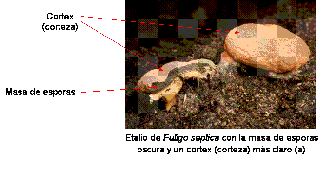 Cortex (corteza) : Cubierta gruesa que cubre la masa de esporas en un etalio