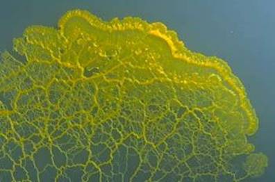 ( plural phaneroplasmodia): A type of plasmodium that may be relatively large and conspicuous enough to be observed in nature; it is characterized by a fan shaped advancing margin.