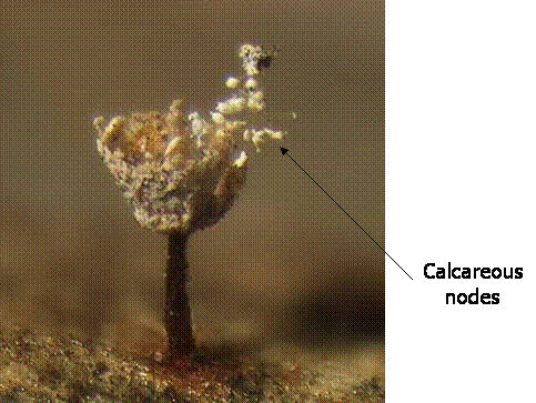 A type of capillitium consisting of slender noncalcareous threads connecting larger calcareous nodes.