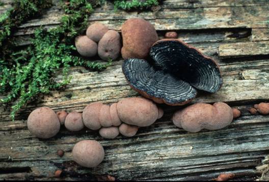 Feeding upon nonliving organic matter. Typical of true fungi such as the one seen here.