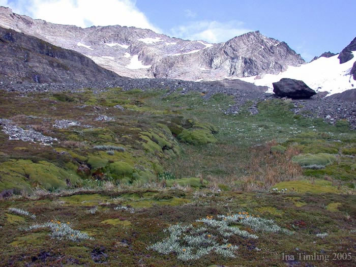 During late December of 2004 and early January of 2005, Ina Timling (University of Alaska–Fairbanks) participated in an expedition that first took her to the extreme southern end of Argentina (the city of Ushuaia in Tierra del Fuego), then to the South Shetland Islands (Aitcho Island, Livingston Island and Cuverville Island) and finally to the Almirante Brown region of the Antarctic Peninsula. In Tierra del Fuego, samples of dead plant material for laboratory isolation of all three groups of mycetozoans were obtained from an alpine area (‘De Glaciar’) west of Ushuaia. Similar sets of samples were collected from both the South Shetland Islands and the Antarctic Peninsula./Dscn0925.jpgPrevious | Home | Next |