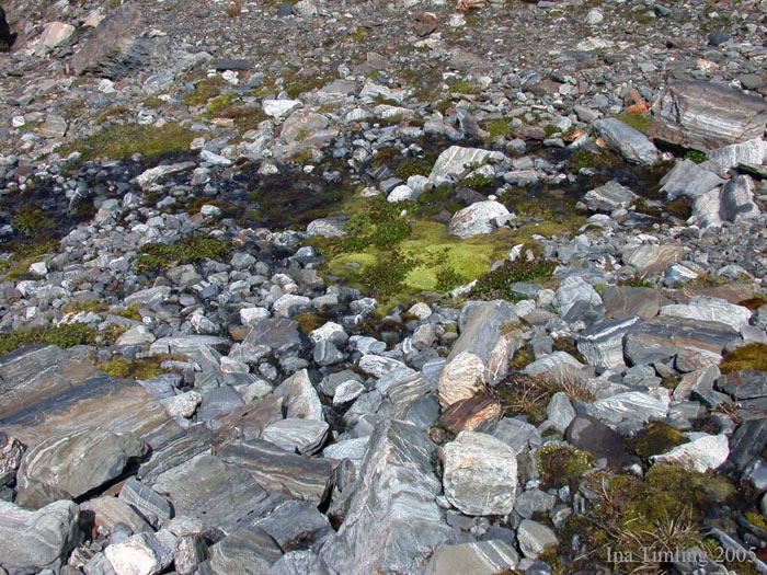 During late December of 2004 and early January of 2005, Ina Timling (University of Alaska–Fairbanks) participated in an expedition that first took her to the extreme southern end of Argentina (the city of Ushuaia in Tierra del Fuego), then to the South Shetland Islands (Aitcho Island, Livingston Island and Cuverville Island) and finally to the Almirante Brown region of the Antarctic Peninsula. In Tierra del Fuego, samples of dead plant material for laboratory isolation of all three groups of mycetozoans were obtained from an alpine area (‘De Glaciar’) west of Ushuaia. Similar sets of samples were collected from both the South Shetland Islands and the Antarctic Peninsula./Dscn0984.jpgPrevious | Home | Next |