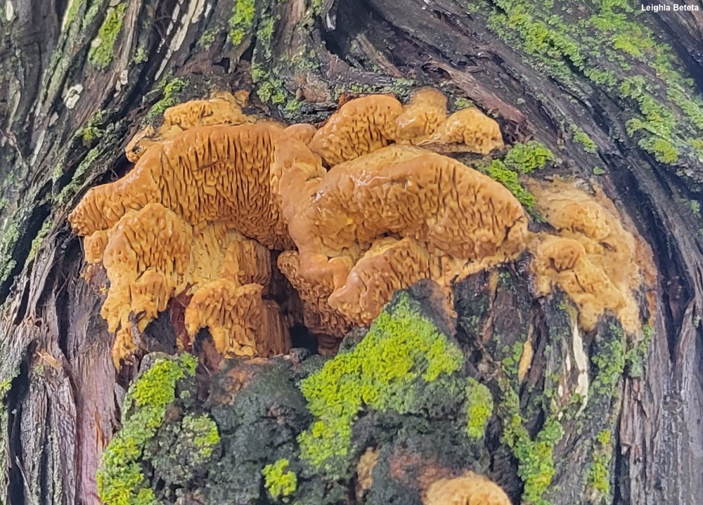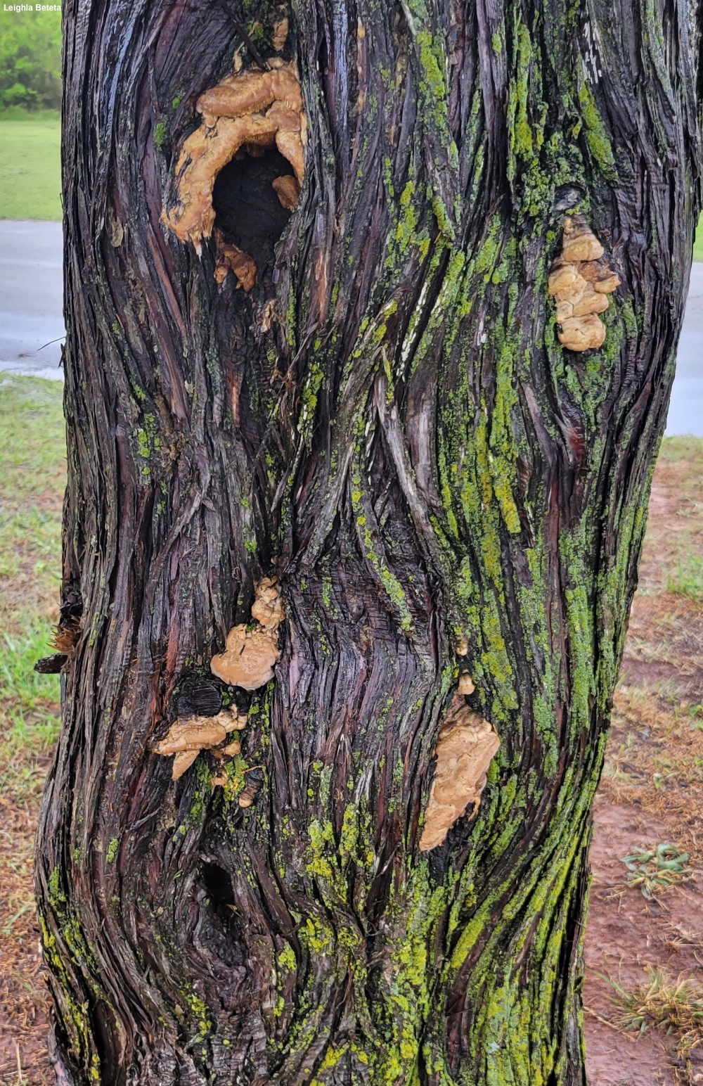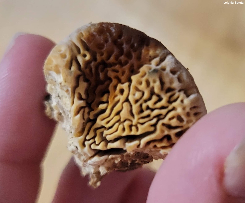 Antrodia juniperina [ Basidiomycota > Polyporales > Fomitopsidaceae > Antrodia . . . ] by Michael Kuo Found exclusively on the wood of junipers, this distinctive polypore spreads a lengthening pore surface underneath a half-hearted cap structure and, as the tubes elongate, the "pores" start to look more like long, flattened teeth. The fungus is reminiscent of Spongipellis pachyodon, but the latter grows on oaks, is usually paler when fresh, and differs microscopically. Daedalea juniperina is a synonym. "Brunneoporus juniperinus" is silliness—an unscientific name published online, without peer review and without taxonomic diligence, citing support by three sources that do not actually support the new genus, creating it without reference to contemporary standards (the standard is Vellinga et al 2015, "Six simple guidelines for introducing new genera of fungi"; the Brunneoporus "publication" literally fails to meet five of the six guidelines). Thanks to Chris Crabtree for teaching me this species. Thanks to Leighla Beteta for documenting, collecting, and preserving Antrodia juniperina for study; her collection is deposited in The Herbarium of Michael Kuo. Description: Ecology: Saprobic on the wood of junipers (species of Juniperus), including eastern redcedar, Rocky Mountain juniper, and Utah juniper; causing a brown rot; growing alone or gregariously; perennial; fairly widely distributed in North America, following the distribution of the host trees. The illustrated and described collection is from Missouri. Cap: Sometimes absent, but when present effused-reflexed, extending 1–3 cm from the tree; whitish to brownish, often with a yellow-brown margin; at first matted-fuzzy but becoming more or less bald with age. Pore Surface: Distinctive; spreading in resupinate fashion 8–15 cm below the cap and 5–8 cm across; pores when very young or near the margin of the cap slot-like, 1–2 mm wide—but the tubes soon lengthen and appear more or less like long, flat teeth; whitish to yellowish; not bruising; when viewed from a 90-degree angle appearing slot-like overall (like the pores of Daedalea quercina). Stem: Absent. Flesh: Very tough; whitish; not changing on exposure. Odor: Not distinctive. Chemical Reactions: KOH yellow to brown on flesh and tubes. Spore Print: White. Microscopic Features: Spores 5.5–7.5 x 2.5–3 µm; long-ellipsoid; smooth; hyaline in KOH; inamyloid. Basidia 20–25 x 4–5 µm; clavate; 4-sterigmate. Cystidia not found. Setae not found. Hyphal system dimitic; generative hyphae 2–4 µm thick, thin-walled, smooth, hyaline in KOH, with clamp connections; skeletal hyphae 4–6 µm thick, with walls 1–1.5 µm thick, smooth, hyaline to golden in KOH. REFERENCES: (Murrill, 1905) Niemelä & Ryvarden, 1975. (Overholts, 1953; Gilbertson & Ryvarden, 1986; Ortiz-Santana et al., 2013; Justo et al., 2017.) Herb. Kuo 09301702, 05052201. This site contains no information about the edibility or toxicity of mushrooms. |