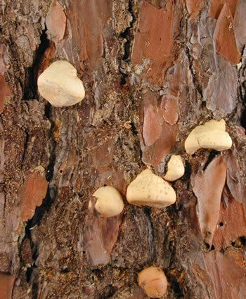 Figure 2. Cryptoporus volvatus on conifer bark.