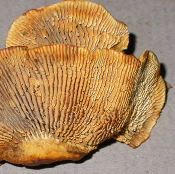 Pore surface: Golden-brown; mostly gill-like with few pores;