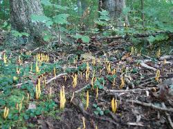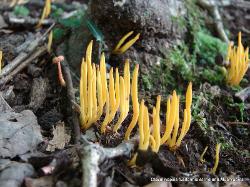 | This yellow coral mushroom usually grows in clusters from the forest floor. |