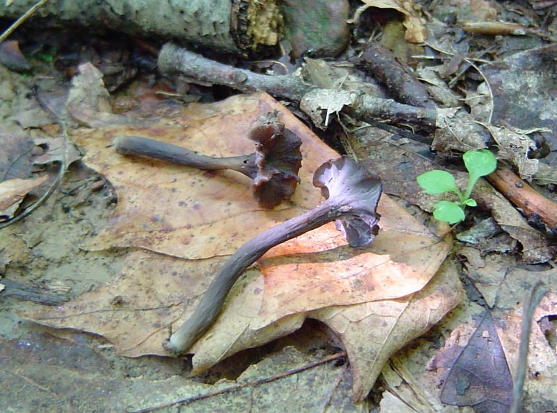 | My collections of this tiny chanterelle mushroom have been in June and July. Oak/hickory woods. There may be more than one species living under this name. |