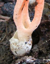 | Pseudocolus fusiformis emerges from a soft, egg-like structure that forms from white mycelia that runs through the soil. This fungus decomposes organic matter. Thank you. |