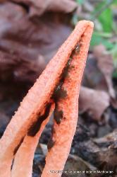 | This bizarre stinkhorn mushroom was found in September near a lake in an area that remains damp even during dry weather. About three inches tall (7.5cm). Alien. |