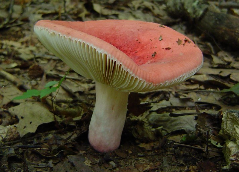 | Formerly known as Russula rosacea. The pictured specimen was found in oak-beech woods.. There are many red Russula mushrooms and most would need DNA testing to identify for certain. This one has a creamy yellowish spore print and bitter taste. |