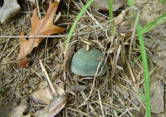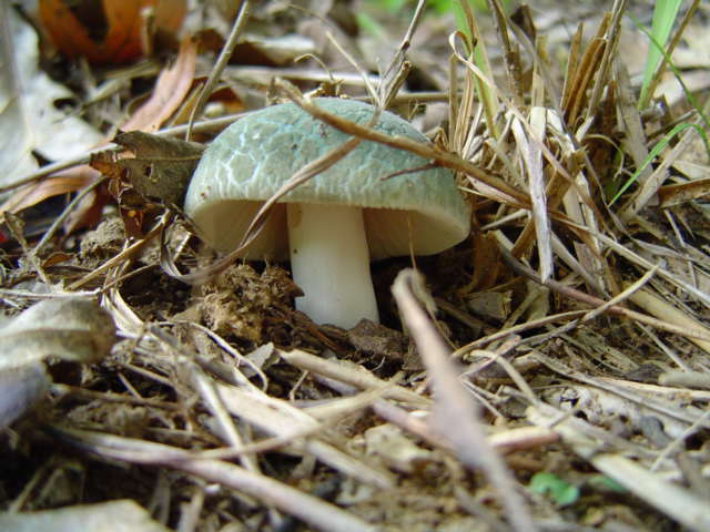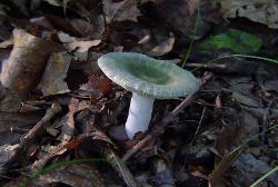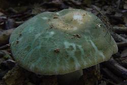 | The name Russula parvovirescens is the best fit for the green, patchwork Russula mushrooms, although there is probably more than one species. Russula virescens is a name borrowed from Europe for a hundred years until we found out that the two similar looking mushrooms are not the same. |