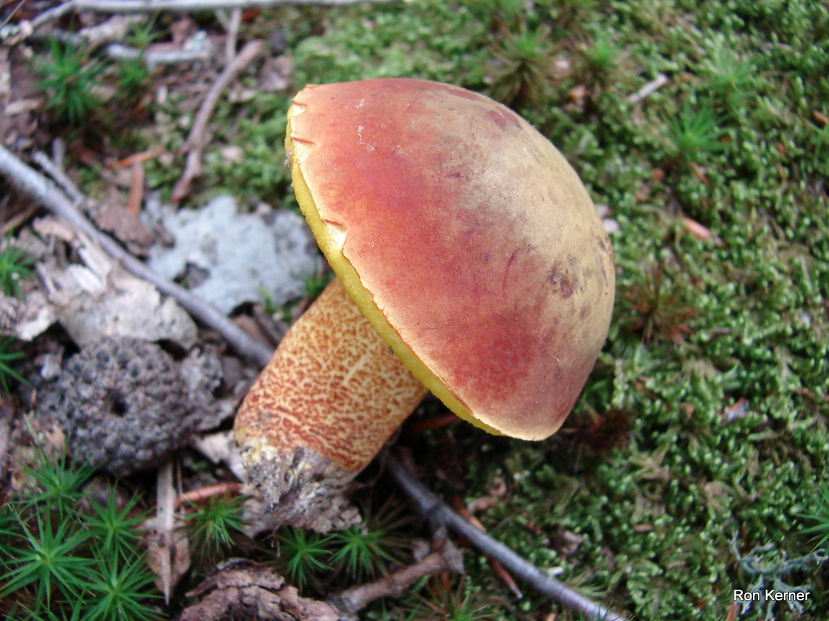 | Found early July growing from sandy soil with oak, beech and pine trees present. The reddish scales on the stalk and pore coloration are helpful identifying characteristics of Xerocomus morrisii. Boletus morrisii is a synonym. |