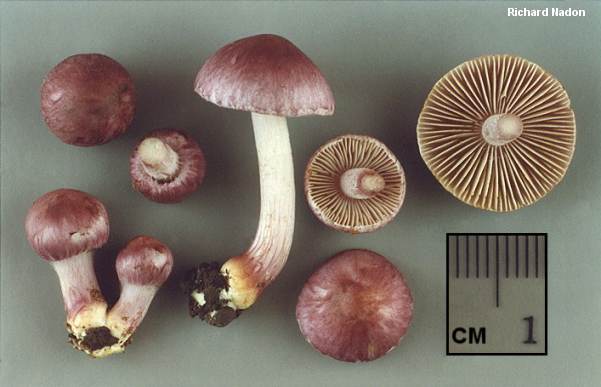 Inocybe geophylla var. lilacina [Basidiomycetes > Agaricales > Cortinariaceae > Inocybe . . . ] by Michael Kuo If it can be said that any species of Inocybe is popular among those who collect mushrooms for fun or study (but not for eating!), it would have to be Inocybe geophylla var. lilacina. In a genus filled with confoundingly similar species, this commonly encountered mushroom actually manages to stand out, which makes it a pleasure to find--plus, it's pretty. Still, I wouldn't bet my life savings (not that I have any life savings to bet, but if I did) on any Inocybe identification made without a microscope, and there are several similar, purplish species in the genus. Inocybe geophylla var. lilacina is, as its name suggests, lilac colored. Other crucial identification features include its bell-shaped cap, spermatic odor, brown (but not rusty brown) spore print, and the cob-webby white cortina evident on young specimens. Microscopic features include its elliptical and smooth spores, and the distinctive thick-walled cystidia. Description: Ecology: Mycorrhizal with hardwoods and conifers; growing alone, scattered, or gregariously, frequently in the presence of Inocybe geophylla var. geophylla, according to some authors; late summer and fall (and winter in California); widely distributed in North America. Cap: 1.5-4 cm; conical to bell-shaped, becoming broadly bell-shaped; dry; silky or almost smooth; lilac overall, but often with mottled hues of pinkish, whitish, or brownish; sometimes fading to nearly white overall when old or exposed to direct sunlight; the margin often inrolled somewhat when young, and usually splitting when mature. Gills: Attached to the stem, sometimes by a notch; close; whitish or pale lilac, becoming grayish brown and eventually brown with pale edges; covered at first by a cob-webby white cortina. Stem: 3-6 cm long; up to 1 cm thick; equal, or enlarged toward the base; dry; finely hairy; lilac and whitish; the base whitish; sometimes with a faint ring zone. Flesh: Whitish or lilac. Odor: Spermatic. Chemical Reactions: KOH on cap surface negative. Spore Print: Brown. Microscopic Features: Spores 7-9 x 4-5.5 µ; more or less elliptical; smooth. Pleurocystidia 40-60 x 10-20 µ; fusoid-ventricose; abundant; thick-walled; apically encrusted. Cheilocystidia similar to pleurocystidia. Inocybe lilacina is a synonym. REFERENCES: (Peck, 1874) Gillet, 1876. (Kauffman, 1918; Kauffman, 1924; Smith, 1949; Smith, Smith & Weber, 1979; Arora, 1986; States, 1990; Lincoff, 1992; Bessette, Miller, Bessette & Miller, 1995; Evenson, 1997; Barron, 1999.) Herb. Kuo 10160403, 01130503. Inocybe geophylla var. geophylla lacks violet shades. A number of varieties and forms of Inocybe geophylla have been documented. Further Online Information: Inocybe geophylla var. lilacina at MykoWeb |