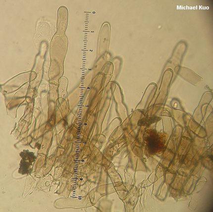 Morchella tomentosa [ Ascomycetes > Pezizales > Morchellaceae > Morchella . . . ] by Michael Kuo Morchella tomentosa is a distinctive morel found in conifer burn sites in western North America (and possibly elsewhere; see the comments below). When young, its cap and stem are densely covered with fine hairs--and the result is often a morel that looks as if it has been dipped in fuzzy soot. With age, however, Morchella tomentosa can become gray, brownish, yellowish, or even whitish--especially when it is exposed to direct sunlight. Thus, while young, black specimens are unmistakable, older specimens can look like several other types of morels, and are best identified with a microscope; even after the tiny hairs have lost their pigment to the naked eye, they are still plentiful and brown-pigmented when viewed in a potassium hydroxide mount. Commercial mushroom collectors in the western mountains are very familiar with Morchella tomentosa, which they call the "gray morel" (not the same thing as the "gray morel" known to collectors in the Midwest and eastern North America, who use the term for immature forms of yellow morels like Morchella esculentoides). The name "Morchella atrotomentosa" has been applied to the species described here by McKnight & McKnight (1987)--but this name is invalid for several reasons (see Morchella atrotomentosa for details), and represents a European mushroom that may or may not be the same. I have seen photos of an apparent match for Morchella tomentosa collected in Michigan's Upper Peninsula in 2008, from a jack pine burn area. However, the collector did not preserve a specimen for scientific study, so the collection cannot be documented. Description: Ecology: Possibly saprobic and mycorrhizal at different points in its life cycle; growing alone, scattered, or gregariously in burned conifer forests, primarily in the spring following the fire (but sometimes appearing in dwindling numbers for a few years thereafter); usually appearing at high elevation; spring (accounting for elevation); Colorado to northern California and Alaska. Cap: 3-11 cm tall and 2-5 cm wide; egg-shaped or nearly conical; pitted and ridged, with the pits and ridges typically densely packed when young, stretching with maturity and developing vertical orientation; when young with gray to nearly black ridges and pits that are densely fuzzy; when mature often developing grayish, pale tan, yellowish, or even whitish pits and ridges; completely attached to the stem; hollow. Stem: 2-6 cm high and 1-4 cm wide; often swollen at the base; when young dark gray to nearly black, and densely fuzzy; with age becoming pale (whitish to yellowish or grayish), usually with stretched-out brownish patches of remaining fuzz; hollow. Microscopic Features: Spores 18-20 x 8-12 µ; smooth; elliptical; without oil droplets; contents homogeneous. Asci 8-spored. Paraphyses cylindric to subclavate, with rounded or subacute apices; septate 2-5 times; hyaline or brownish in KOH. Hairs on sterile ridges and stem surface abundant; variable in shape; to 275 x 17 µ; with brown walls in KOH. REFERENCES: Kuo, 2008. (Pilz et al., 2004 ["PS D"]; Kuo, 2005 ["black foot morel"]; McFarlane et al., 2005 ["gray morel"]; Pilz et al., 2007 ["gray morel"]; Kuo, 2008; O'Donnell et al., 2011; Kuo et al., 2012.) SPECIMENS EXAMINED: Herb. F. 06100102, 06100103, 06100104, 06100105, 06100106, 06100107, 06100110, 08310301, 04070402, 05300402, 06040401 , 06150402 (isotype), 06150403 (isotype), 06150405 (holotype), 06150406 (isotype), 06150407 (isotype), 06150409 (isotype), 06150411 (isotype), 06170402, 06180401, 06180402, 06180403, 06180404, 06180405, 06180406, 06180407, 06180408, 06180409, 06180413, 06180414, 06180415, 06180420, 06180421, 06180423, 06190401, 06300401, 06300402, 06300403, 06300404, 06300405, 06300406, 06300408, 07010401, 07010402, 07010403, 07010404, 07070402, 07070403, 07070407, 07130401, 07130402, 07130406, 07130407, 07130408, 07130409, 07140401, 07140402, 07140403, 08070403, 08070404. Herb. Kuo 07060802. This site contains no information about the edibility or toxicity of mushrooms. |