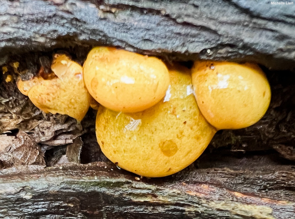 [ Basidiomycota > Agaricales > Mycenaceae > Panellus ... ] Panellus serotinus by Michael Kuo, 6 June 2024 Panellus serotinus is, in the words of American mycological giant Alexander Smith, "the harbinger of the end of the mushroom season in late fall or winter depending on the region" (1975). It appears on the deadwood of hardwoods, usually on logs with bark still attached, and is reminiscent of oyster mushrooms—except that oyster mushrooms aren't green. Other distinguishing features for Panellus serotinus include the sticky-when-fresh surface, the rubbery flesh, and the orangish to yellowish gills that develop brownish edges. Panellus serotinus is often yellow or orange when young, and when this is the case it can be confused with Phyllotopsis nidulans. However, the latter species has a dry and hairy cap surface, while the cap of Panellus serotinus is sticky and more or less bald, at least when young and orange. Over the years Panellus serotinus has been placed in various genera (including Pleurotus, Hohenbuehelia, Panus, and Sarcomyxa). A 2001 study based on morphology and DNA (Jin, Hughes & Petersen) supported the idea that the genus Panellus is, well, a hot mess requiring substantial revision, and that Sarcomyxa serotina may be the most appropriate name for Panellus serotinus. However, the name Sarcomyxa serotina has not yet been validly published. The first attempt, made by Karsten in 1891, "fails" to meet an absolutely ridiculous standard set by contemporary taxonomic code (see discussion below if you care)—while the second attempt, made by Papp in 2019, is officially valid but completely unscientific, having been made without peer review, online, without offering a shred of scientific support (see this page for further discussion). So we are left with "Panellus serotinus" until someone publishes the Sarcomyxa combination responsibly. Thanks to Eric Nerino and Michelle Lierl for collecting, documenting, and preserving Panellus serotinus for study; their collections are deposited in The Herbarium of Michael Kuo. Description: Ecology: Saprobic on the recently downed (with bark still adnate) deadwood of hardwoods and occasionally on the deadwood of hemlocks; causing a white rot; usually growing in shelving clusters but sometimes growing alone or scattered; late fall and winter; originally described from Göttingen, Germany (Persoon 1793); widespread in Europe and North America, primarily in northern and montane (including Appalachian) areas. The illustrated and described collections are from Kentucky and Pennsylvania. Cap: 2–11 cm wide; semicircular to shell-shaped in outline; planoconvex to flat or shallowly depressed; sticky when fresh; bald or, with age, finely fibrillose-scaly, especially toward the point of atachment; at first orangish yellow to orange, becoming olive to dark green, sometimes mottled with yellow shades; fading to yellowish or greenish, or sometimes darkening to medium brown. Gills: Radiating from the point of attachment or running down the stem; close or crowded; often forking; short-gills frequent; orangish to yellowish buff, developing brownish edges. Stem: Absent or, when present (usually in younger specimens), lateral and stubby; whitish to yellowish or orange; often featuring a zone of small reddish brown potholes below the gills. Flesh: Whitish; tough and rubbery; unchanging when sliced. Odor and Taste: Not distinctive. Chemical Reactions: KOH on cap surface negative; ammonia on cap surface negative. Spore Print: White. Microscopic Features: Spores 3.5–5.5 x 0.75–1.5 µm; cylindric to suballantoid; smooth; hyaline in KOH, with 1–4 oil droplets; inamyloid, or with amyloid walls when still attached to (or recently released from) basidia. Basidia 25–28 x 3 µm; subclavate; 4-sterigmate. Cheilocystidia 35–60 x 7.5–15 µm; cylindric to fusiform or lageniform; smooth or encrusted; thin-walled; hyaline in KOH. Pleurocystidia 25–40 x 4–15 µm; fusiform to lageniform, widely cylindric, or subutriform; smooth; thin-walled; hyaline in KOH. Pileipellis a cutis with areas of trichoderm-like, upright aggregations of elements; elements 2.5–10 µm wide, smooth; hyaline to yellowish in KOH; terminal cells with rounded or subclavate apices. Subcutis gelatinized and poorly defined. Clamp connections present. REFERENCES: (C. H. Persoon, 1793) R. Kühner, 1950. (Fries, 1821; Kummer, 1871; Saccardo, 1887; Miller, 1970; Smith, 1975; Smith, Smith & Weber, 1979; Phillips, 1981; Arora, 1986; Breitenbach & Kränzlin, 1991; Phillips, 1991/2005; Schalkwijk-Barendsen, 1991; Lincoff, 1992; Vellinga, 1995; Barron, 1999; Jin, Hughes & Petersen, 2001; Roody, 2003; Miller & Miller, 2006; Binion et al., 2008; Boccardo et al., 2008; Buczacki et al, 2013; Siegel & Schwarz, 2016; Baroni, 2017; Gminder & Böhning, 2017; Elborne & Læssøe, 2018; Elliott & Stephenson, 2018; Sturgeon, 2018; Læssøe & Petersen, 2019; Kibby, 2020; McKnight et al., 2021.) Herb. Kuo 11131601, 10292301. Note regarding Sarcomyxa serotina P. Karst.: Karsten's 1891 combination fails to comply with Article 35.2 of the Melbourne Code, which says a combination is not valid "unless the author definitely associates the final epithet with the name of the genus." What Karsten did was to describe a new genus, Sarcomyxa, and then write, on the next line, "Type species: Pleurotus serotinus." He didn't write "Sarcomyxa serotina" because it was obvious what he was doing, and he wanted to be sure his readers knew precisely which fungus he wanted to be the type species for his new genus; thus he used the name that had been in use until then. But the code, approved 120 years later, demands the author actually write "Sarcomyxa serotina," and the blowhards in charge even offer an example of the "error" ("Ex. 6") which is fairly precisely parallel to Karsten's case. Meanwhile, the Code says, Linnaeus was not breaking the rules when he placed "the epithet in the margin opposite the name of the genus," since that stra