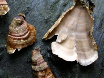 Figure 2. Note the zoned, fan-shaped basidiocarps. The