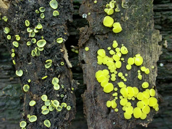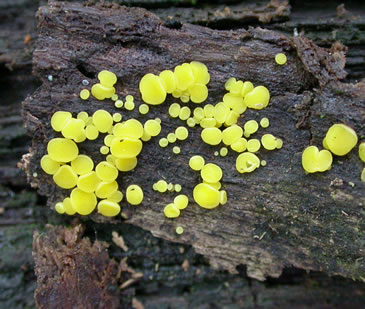 Figure 4. Yellow fairy cups typically occurs in groups or