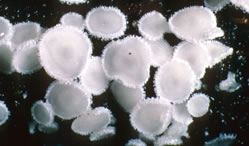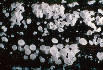 Figure 1. Clusters of Dasyscyphus virgineus on decaying