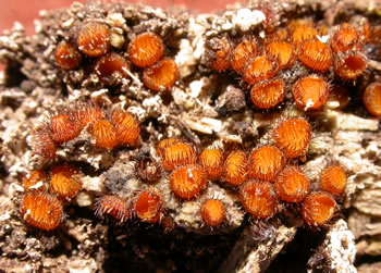 Figure 7. Scutellinia erinaceus clustered on decaying