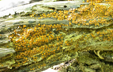 Figure 8. Orange eyelash cup on decaying hardwood.