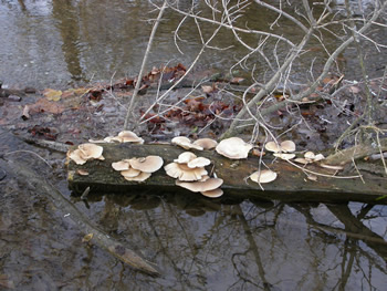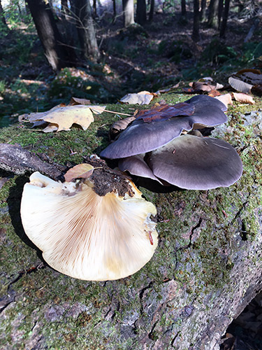 Pleurotus ostreatus sometimes occurs on conifers; April