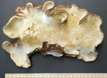 Fomitopsis betulina. Fruit bodies of the fungus are