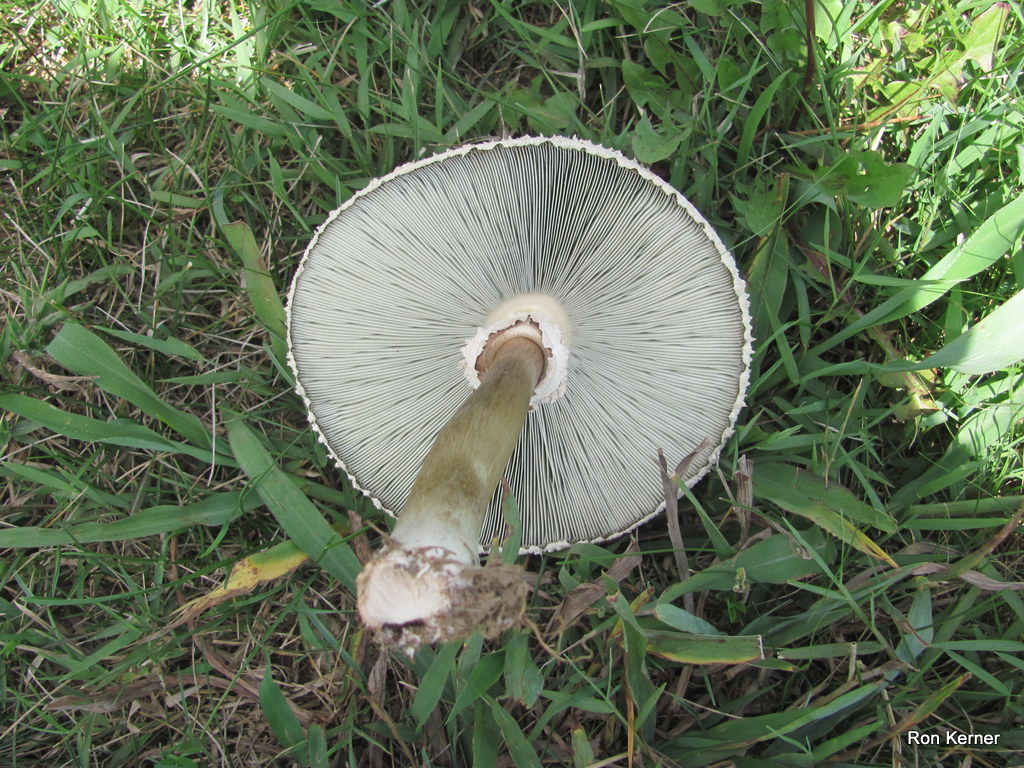 This large mushroom appears in summer and fall, most often in urban areas like school yards, neighborhood lawns and parks. Very common in the Midwest. Scaly cap and large ring on smooth stem. NOT edible; poisonous. The unique green spore print this mushroom produces separate it from look-a-likes Chlorophyllum rhacodes and Chlorophyllum brunneum, which have white spore prints. Amanita thiersii grows in the same habitat, but has a shaggy cap and stem and also has a white spore print. |