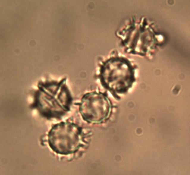 These micrographs show the spiny spores of Lactarius lignyotus. Spores 8-10 µ. |