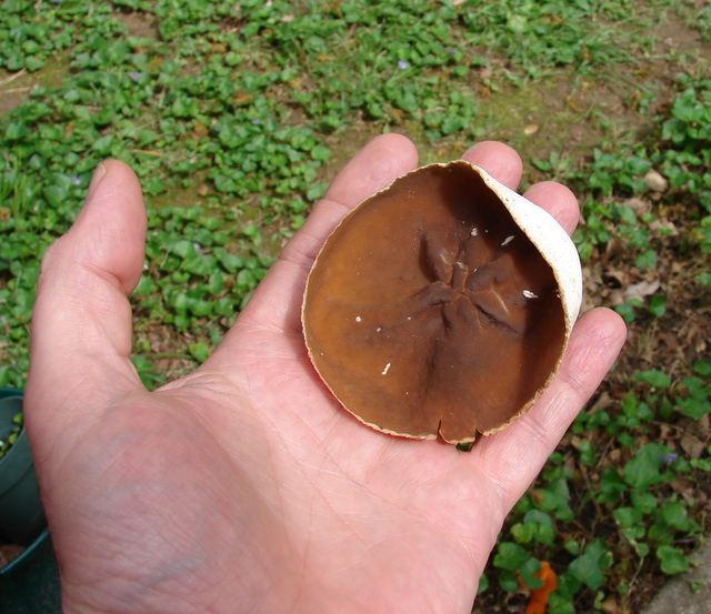 These pictures show a large fruiting of this cup fungus at various stages of growth.