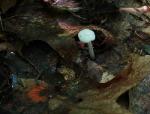 Formerly named Xerula megalospora and Hymenopellis megalospora. Decomposes dead wood, such as decaying tree roots. This collection (largest cap 3.5cm wide) was found in June growing among maple, oak, poplar and beech trees. Spore print white. The root-like stem is characteristic of the genus. |