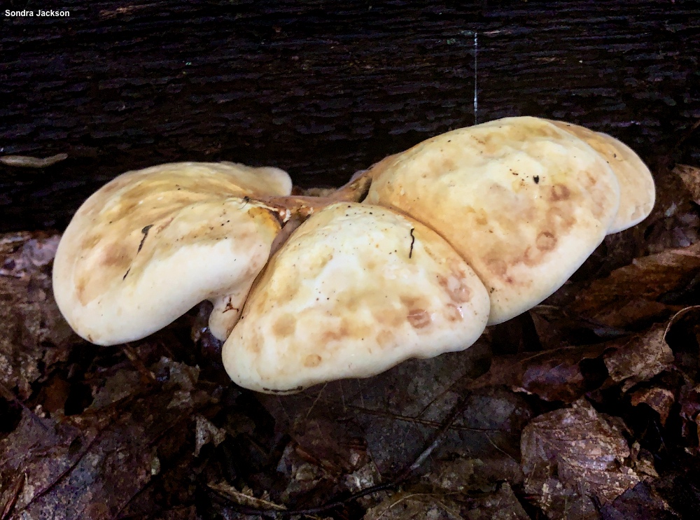 Buglossoporus quercinus [ Basidiomycota > Polyporales > Fomitopsidaceae > Buglossoporus . . . ] by Michael Kuo This distinctive polypore is found on the wood of oaks in Europe and in eastern North America from New York to Virginia. It features a yellowish cap that lacks a clearly differentiated cuticle, and a creamy pore surface with very tiny pores. Its surfaces and flesh bruise pink to purplish. Buglossoporus quercinus is treated as a rare find in European literature, and it is virtually absent from North American literature and herbaria. However, online reports of it in the Mid-Atlantic states are not uncommon (several dozen reports within a few years); perhaps the species has been recently introduced through human activities and is flourishing in its new digs. Buglossoporus pulvinus and Piptoporus quercinus are synonyms. Thanks to Sondra Jackson for collecting, documenting, and preserving Buglossoporus quercinus for study; her collection is deposited in The Herbarium of Michael Kuo. Description: Ecology: Saprobic and parasitic on living and dead oaks; causing a brown rot; annual; growing alone or gregariously; summer; originally described from Germany; widely distributed in Europe; in North America appearing from New York to Virginia. The illustrated collection is from Maryland. Cap: 10–20 cm across; sometimes partially fused with neighboring caps; semicircular to tongue-shaped in outline; broadly convex; without a differentiated cuticle ("skin"); soft and sub-velvety to the touch; dull yellow to brownish yellow, maturing to yellow-brown; paler at the margin; bruising pink to purplish. Pore Surface: Cream colored; bruising pink to purplish, then slowly brown; pores very small (3–5 per mm); tubes to 5 mm long. Stem: Absent. Flesh: Whitish; staining pink to purplish when bruised or sliced; corky. Odor: Usually subfragrant—like toast or chickory. Microscopic Features: Spores: 6–8 x 2.5–3.5 µm; allantoid; smooth; hyaline in KOH; inamyloid. Cystidia not found. Setae not found. Hyphal system dimitic: context composed of skeletal hyphae; tube trama composed of thin-walled hyphae 2.5–3 µm wide, smooth, hyaline to orange-brown in KOH, with clamp connections. REFERENCES: (H. A. Schrader, 1794) F. Kotlába & Z. Pouzar, 1966. (Calonge et al., 2003; Kotiranta et al., 2005; Crockatt, 2008; Han et al., 2016; Kibby, 2017; Læssøe & Petersen, 2019; Shen et al., 2019; Szczepkowski et al., 2019.) Herb. Kuo 06232201. This site contains no information about the edibility or toxicity of mushrooms. |