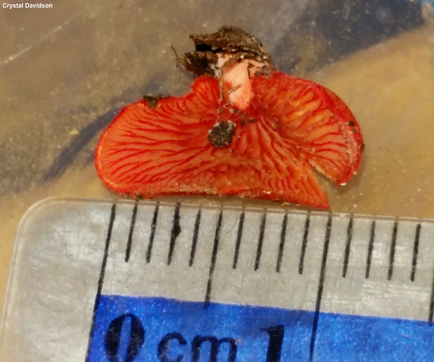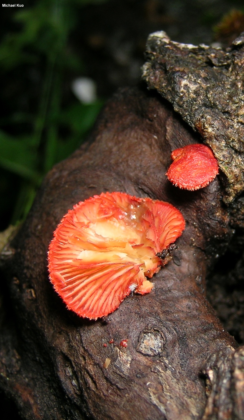 Major Groups > Gilled Mushrooms > Dark-Spored > Pleurotoid Mushrooms > Crepidotus > Crepidotus cinnabarinus |