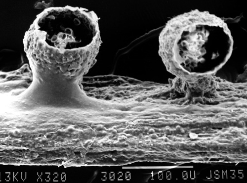 | Lepidoderma alpestroides Mar. Mey. & PoulainPoulain,M., Meyer, M., Bozonnet, J. M. 2002: Deux espèces nouvelles de myxomycètes: Lepidoderma alpestroides et Lepidoderma perforatum. Bull.Mycol.Bot.Dauphiné-Savoie 165: 5-18. (2002) | | © 2005 |