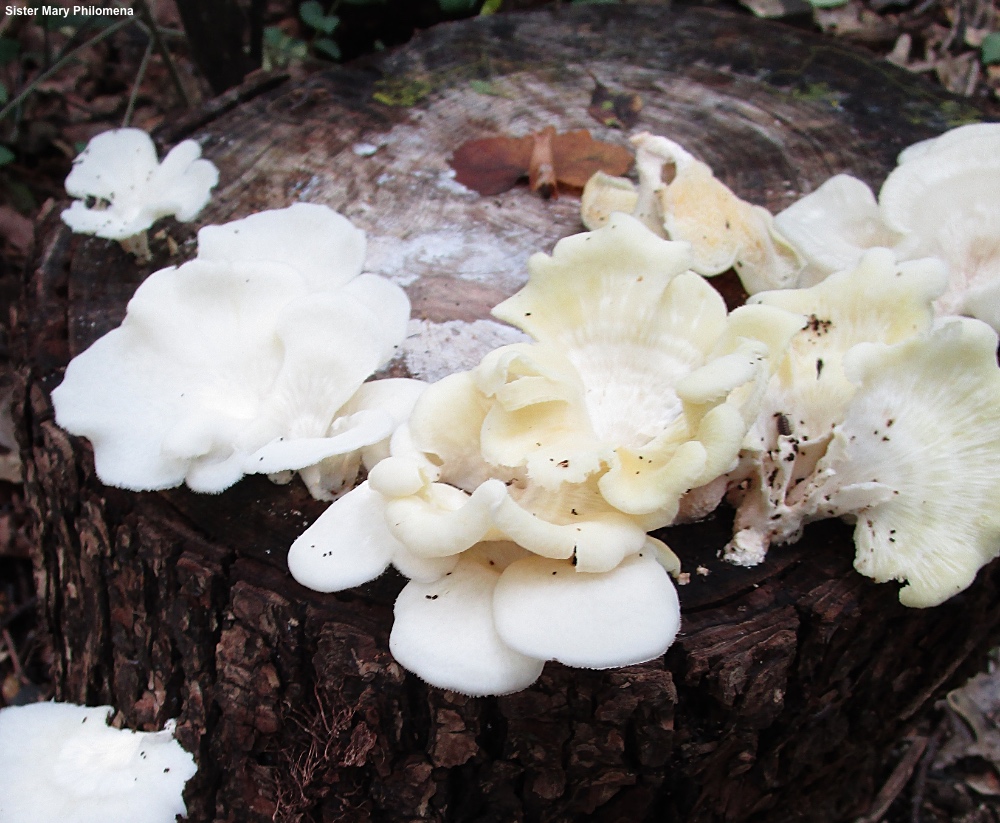 [ Basidiomycota > Polyporales > Polyporaceae > Favolus . . . ] Favolus brasiliensis by Michael Kuo, 25 October 2022 This tropical polypore appears on the deadwood of hardwoods in the Americas from South America to Central America and the Caribbean—and in North America from Mexico through Texas, along the Gulf Coast, and into Florida. It has a distinctive pore surface composed of large, hexagonal, elongated pores, and a white to pale yellowish cap that becomes radially ridged or lined with age. Field guides often call this fungus "Polyporus tenuiculus" or "Favolus tenuiculus," but research over the past decade or so indicates that the best name for the tropical American species is Favolus brasiliensis—Favolus because its DNA (based on LSU and ITS sequences) separates it from the core of Polyporus species, and brasiliensis because that name represents a species from the Americas, while tenuiculus represents a species described from western Africa for which the type collection "seems to be inaccessible" (Sotome et al. 2013; ask me whether that vagueness would have survived peer review had I been the peer, lol), making the name ambiguous. There may be at least two phylogenetic species hanging out within Favolus brasiliensis (Palacio et al. 2021); additional sampling and research will be required before species lines can be drawn more clearly. Thanks to Sister Mary Philomena, O. P., for documenting, collecting, and preserving Favolus brasiliensis for study; her collection is deposited in The Herbarium of Michael Kuo. Description: Ecology: Saprobic on the deadwood of various hardwoods; causing a white rot; growing alone, gregariously, or in overlapping clusters; found year-round; originally described from Cuba (Fries 1821); distributed throughout the tropics in North America, Central America, and South America; also found in the Caribbean. The illustrated and described collection is from Texas. Cap: 1.5–6.5 cm across; semicircular to round or lobed in outline; planoconvex becoming shallowly vase-shaped; thin; dry; finely fuzzy or nearly bald; white to pale yellowish; radially wrinkled or lined at maturity. Pore Surface: Running down the stem; pores elongated and hexagonal, up to 5 mm long and 1 mm wide; white to pale yellowish; not bruising. Stem: Usually lateral or off-center; 1–2 cm long; up to 5 mm thick; tough; white. Flesh: White; unchanging when sliced. Odor and Taste: Odor slightly foul, especially in rehydrated material; taste not distinctive. Spore Print: White. Microscopic Features: Spores 7–11 x 3–4 µm; elongated-ellipsoid or subcylindric; smooth; hyaline and uni-, bi-, or multiguttulate in KOH; inamyloid. Basidia 24–28 x 4–5 µm; 4-sterigmate. Cystidia not found. Setae not found. Hyphal system dimitic: generative hyphae 3–5 µm wide, thin-walled, smooth, clamped at septa; skeletal hyphae 4–8 µm wide, thick-walled; smooth; aseptate. REFERENCES: (E. M. Fries, 1821) E. M. Fries, 1828. ( Overholts, 1953; Gilbertson & Ryvarden, 1987; Bessette et al., 1995; Ryvarden, 1999; Ryvarden & Iturriaga, 2003; Sotome et al., 2008; Sotome et al., 2013; Zhou & Cui, 2017; Elliott & Stephenson, 2018; Palacio et al., 2019; Palacio et al., 2021; Ji et al., 2022.) Herb. Kuo 09112203. This site contains no information about the edibility or toxicity of mushrooms. |