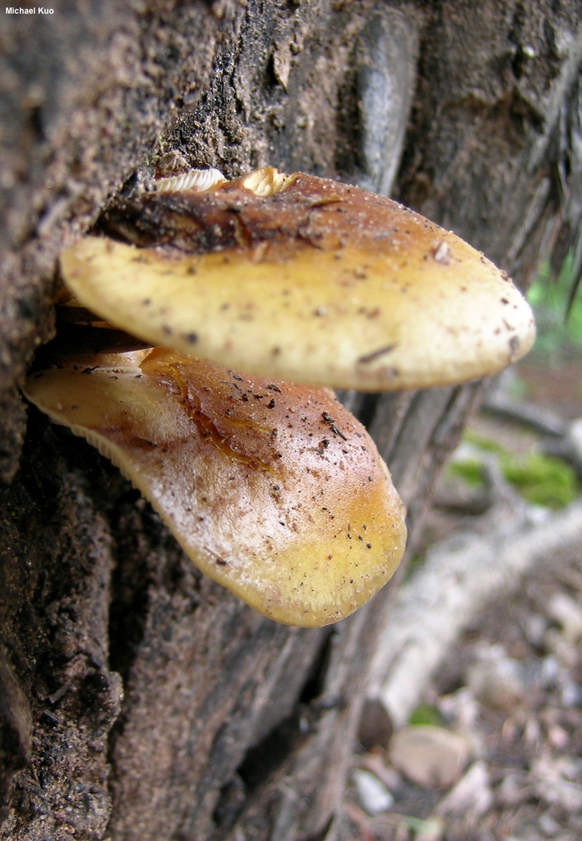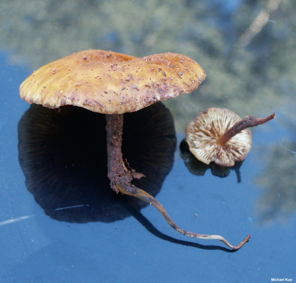 [ Basidiomycota > Agaricales > Physalacriaceae > Flammulina . . . ] Flammulina populicola by Michael Kuo, 1 May 2024 Like its better-known relative, Flammulina velutipes, Flammulina populicola has a fuzzy brownish stem, a white spore print, and a sticky, reddish brown to orangish brown cap. But there are five crucial things that separate the two species: