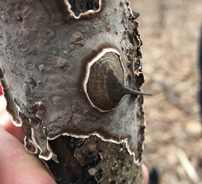 Figure 4. Growth of Peniophora albobadia surrounding a thorn