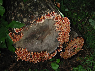 Figure 4. Profuse fruiting of Stereum gausapatum on the cut