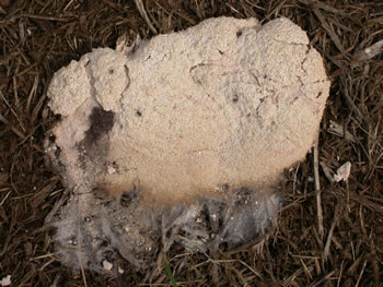 and brittle. Breaking open the peridium exposes millions of