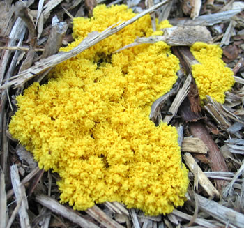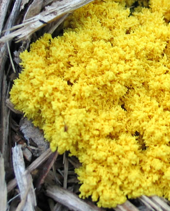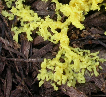 This plasmodium on bark mulch is moving in an