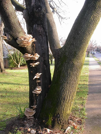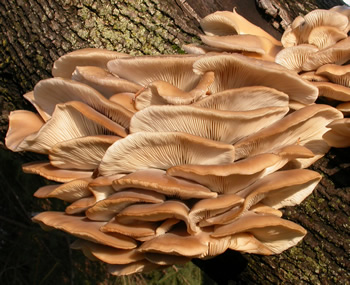 Pleurotus ostreatus sometimes occurs on conifers; April