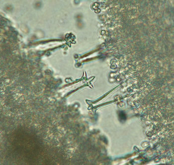 pleurocystidia, sterile cells which cover the gill surfaces.