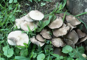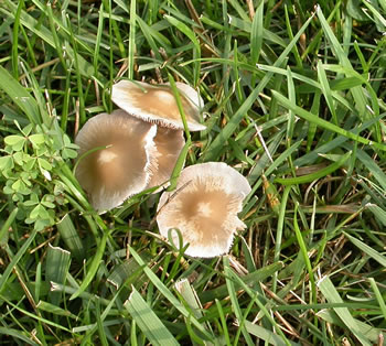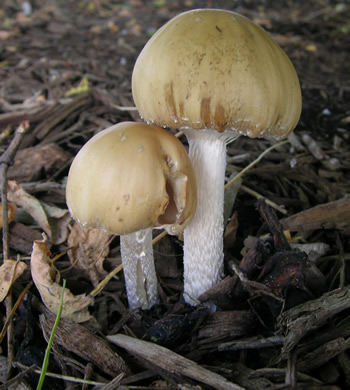 Figure 1. Psathyrella candolleana growing in wood mulch.