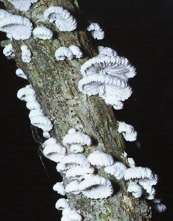 Figure 1. A typical fruiting of common split gill on wood.
