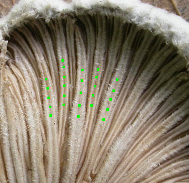 Gills: Gill-like folds are white to gray or pinkish-gray; hairy;