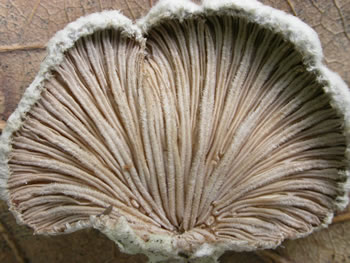 A closeup showing the many split gills of