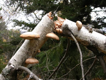 Figure 1. Fruitbodies of Fomitopsis betulina growing from