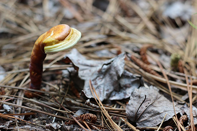 Figure 2. Stalked fruitbodies of Ganoderma curtisii.