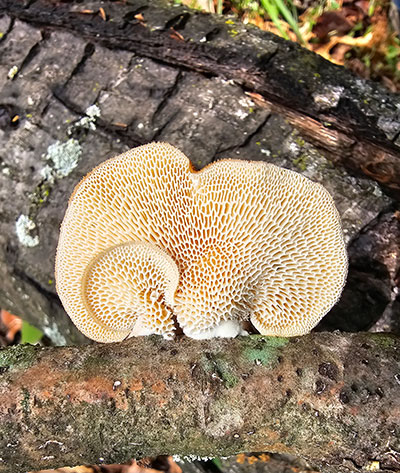 Figure 1. Hexagonal-pored polypore on a branch. Photo