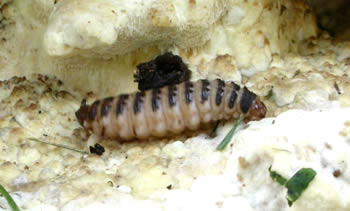 Figure 5. Larva of pleasing fungus beetle feeding on